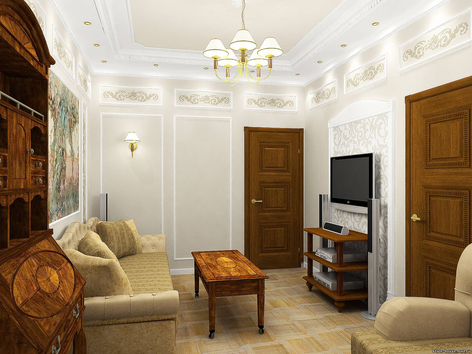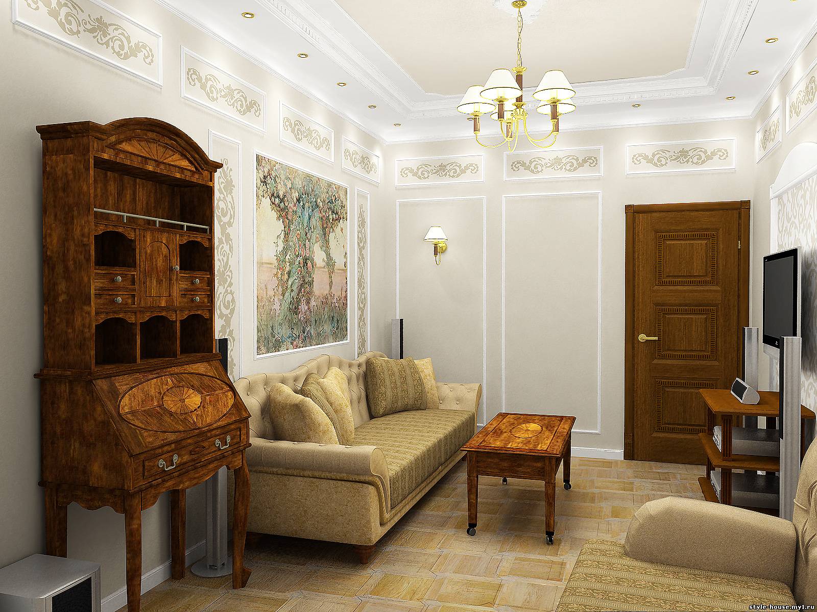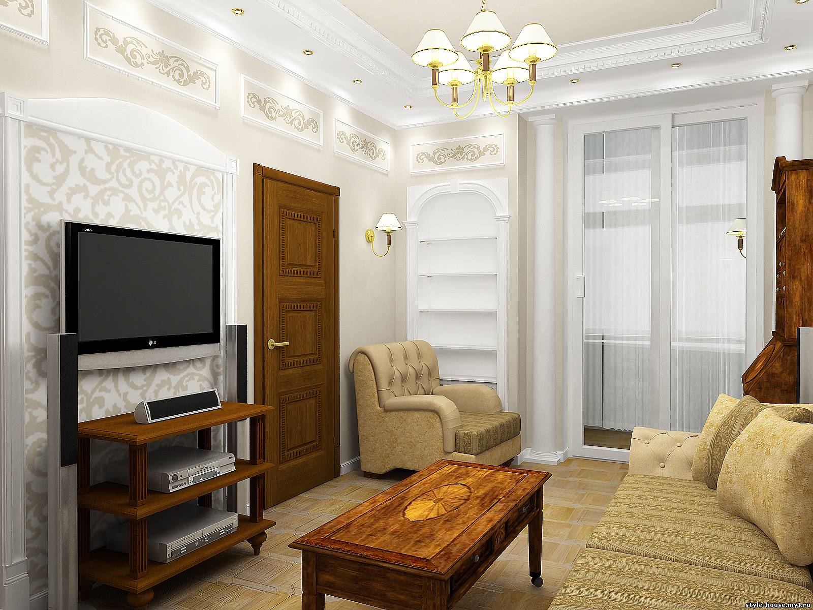 ГОСТИНЫЕ. ПРИМЕР 7. ВАРИАНТ ГОСТИНОЙ В КЛАССИЧЕСКОМ СТИЛЕ.