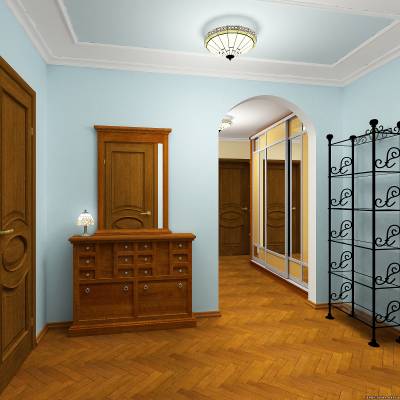 ПРИМЕР 6. ПРИХОЖАЯ И КОРИДОР, В ОФОРМЛЕНИИ КОТОРЫХ ИСПОЛЬЗУЕТСЯ КОВАННАЯ МЕБЕЛЬ.
