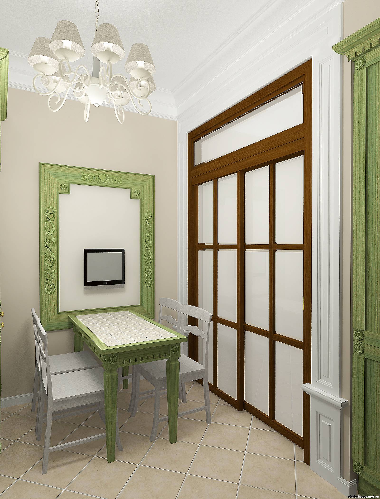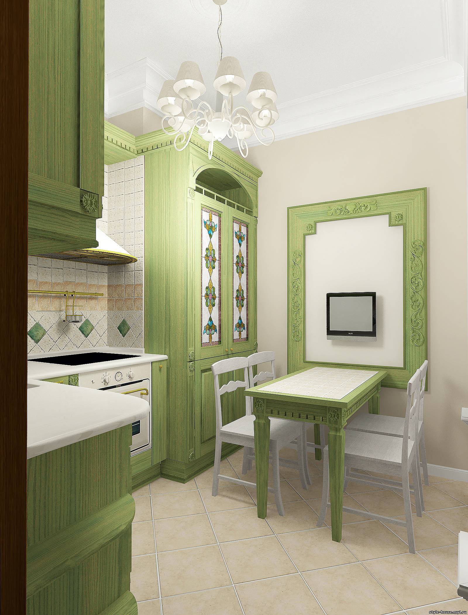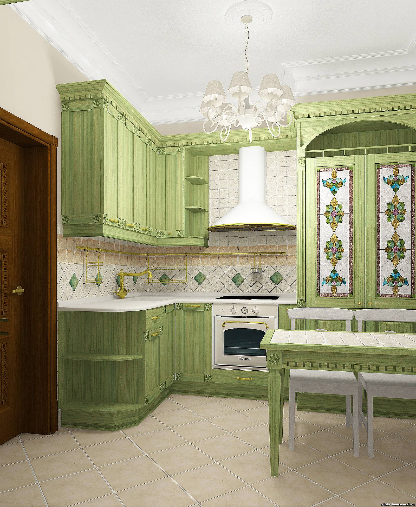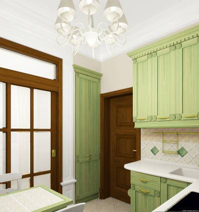 КУХНИ. ПРИМЕР 6. ЗЕЛЕНАЯ КУХНЯ В КЛАССИЧЕСКОМ СТИЛЕ.