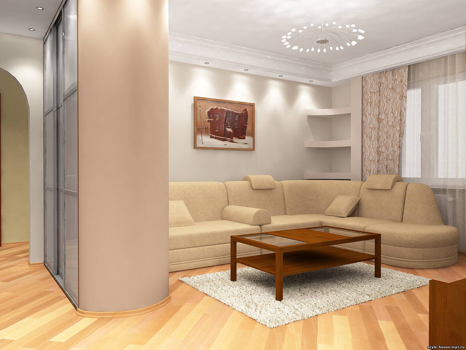 ПРИМЕР 8.Гостиная, объединенная с зонами коридора и кухни.