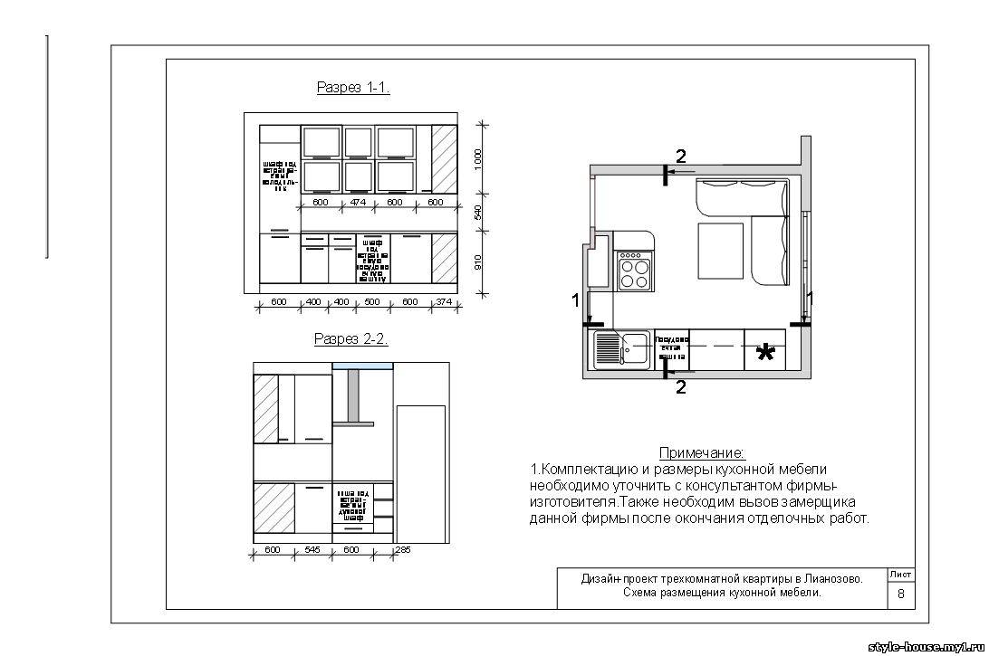 СХЕМА РАЗМЕЩЕНИЯ КУХОННОЙ МЕБЕЛИ